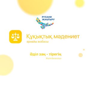 Одним из основных принципов «Құқықтық мәдениет» является создание общества с правовой культурой на пути формирования конкурентоспособной нации. С этой целью будет организован комплекс мероприятий на основе программы «Рухани жаңғыру».