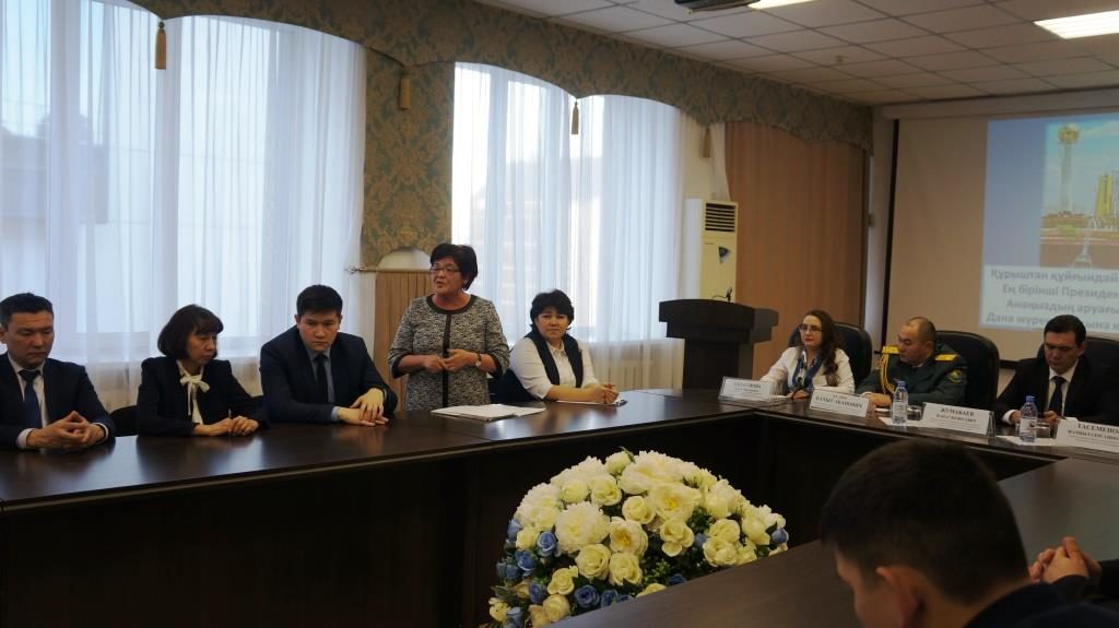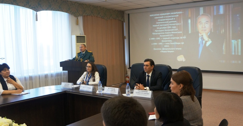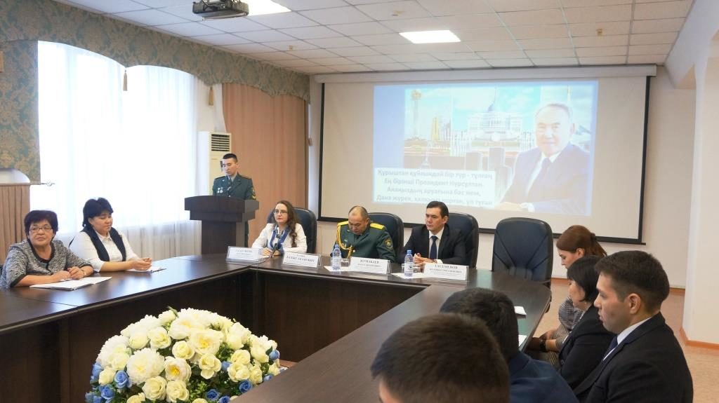 Капитан Калиев Бахыт Аканович, преподаватель кафедры общеобразовательные дисциплины Военного института Национальной гвардии Республики Казахстан, лучший преподаватель на протяжении уже трёх лет поздравил участников мероприятия. В своём выступлении он отметил огромный вклад Елбасы Первого Президента страны в становлении государства на мировой арене. Решая внешнеполитические и экономические вопросы деятельности страны, глава государства всегда уделял внимание поддержанию мира и согласия в казахстанском обществе.