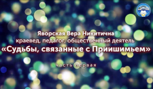 Онлайн-встреча с Верой Никитичной Яворской педагогом, краеведом, общественным деятелем под названием "Судьбы связанные с Приишимьем". Вера Никитична прекрасный рассказчик, её студентам, которых она обучала можно только позавидовать. Несомненно её лекции можно слушать и переслушивать неоднократно.