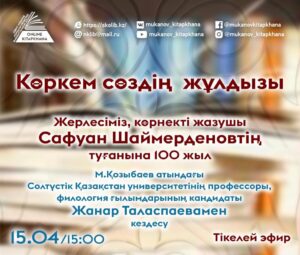 Тікелей эфир «Көркем сөздің жұлдызы» Жерлесіміз, көрнекті жазушы Сафуан Шаймерденовтің туғанына 100 жыл. М.Қозыбаев атындағы Солтүстік Қазақстан университетінің профессоры, филология ғылымдарының кандидаты Жанар Таласпаевамен кездесу.