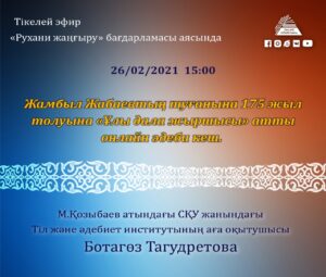 Прямой эфир «Книги – юбиляры 2022» И. Жансугуров «Кулагер», С. Сейфуллин «Путь к счастью»