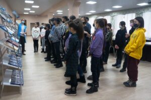 По завершению мероприятия детей ознакомили с выставкой «Қазіргі заманның атақты көшбасшысы = Выдающийся лидер современности».