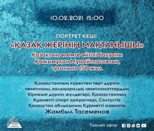 Тікелей эфир Портрет кеші «Қазақ жерінің мақтанышы» Қазақтың әлемге әйгілі балуаны Қажымұқан Мұңайтпасовтың туғанына 150 жыл Қазақстанның күрестен төрт дүркін чемпионы, халықаралық чемпионаттардың бірнеше дүркін жүлдегері, Қазақстанның Құрметті спорт қайраткері, Солтүстік Қазақстан облысының Құрметті азаматы Жамбыл Тасеменов.