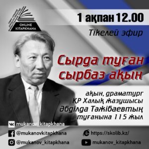 Тікелей эфир. "Сырда туған сырбаз ақын". Ақын Әбділда Тәжібаевтың туғанына 115 жыл
