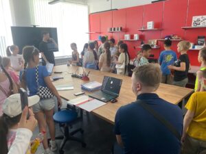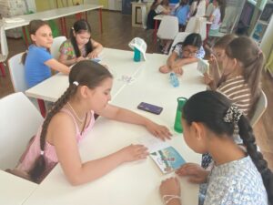 Библиотека превращает летний отдых детей в увлекательное и познавательное путешествие в мир знаний. К нам сегодня пришли учащиеся 3-4 классов Гимназии «Бэст». Для юных читателей была подготовлена игровая программа на английском языке. Дети играли в «Snowball/Снежный ком», целью было назвать имя предыдущих игроков и свое имя. Затем смотрели мультфильм «Pete the Cat» про известного кота Пита и выполняли задания после просмотра. Маленькие участники активно отвечали на все вопросы. В завершение посетили Makerspace и узнали о том, что в таком креативном пространстве с помощью современных устройств можно реализовывать свои идеи и создавать интересные проекты.