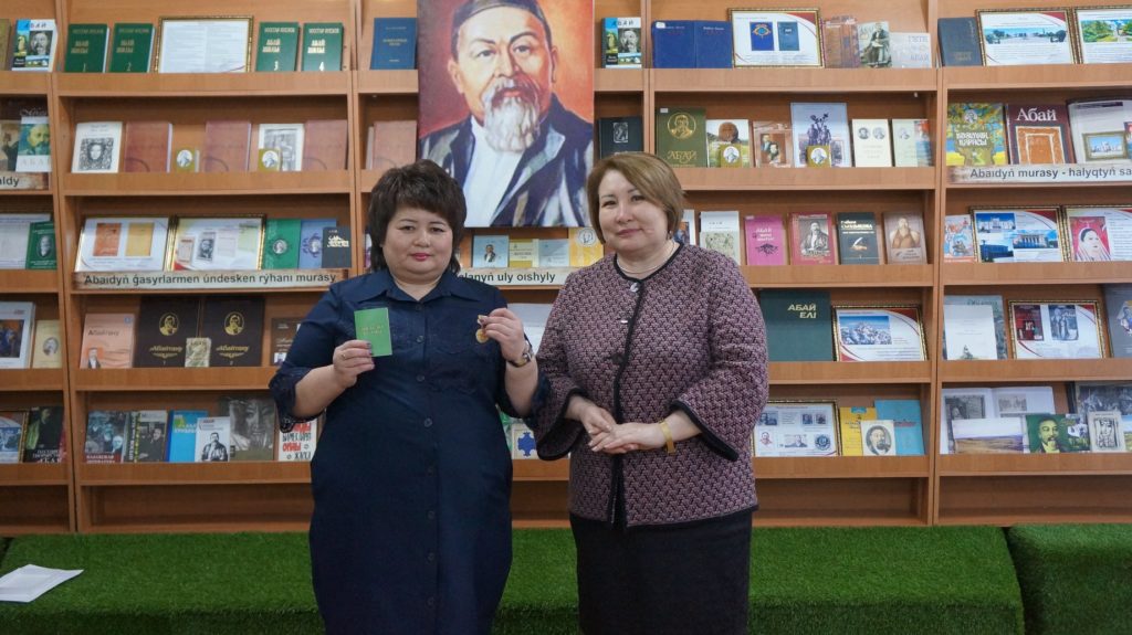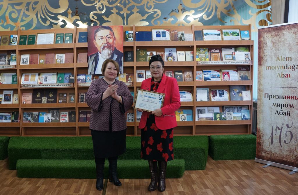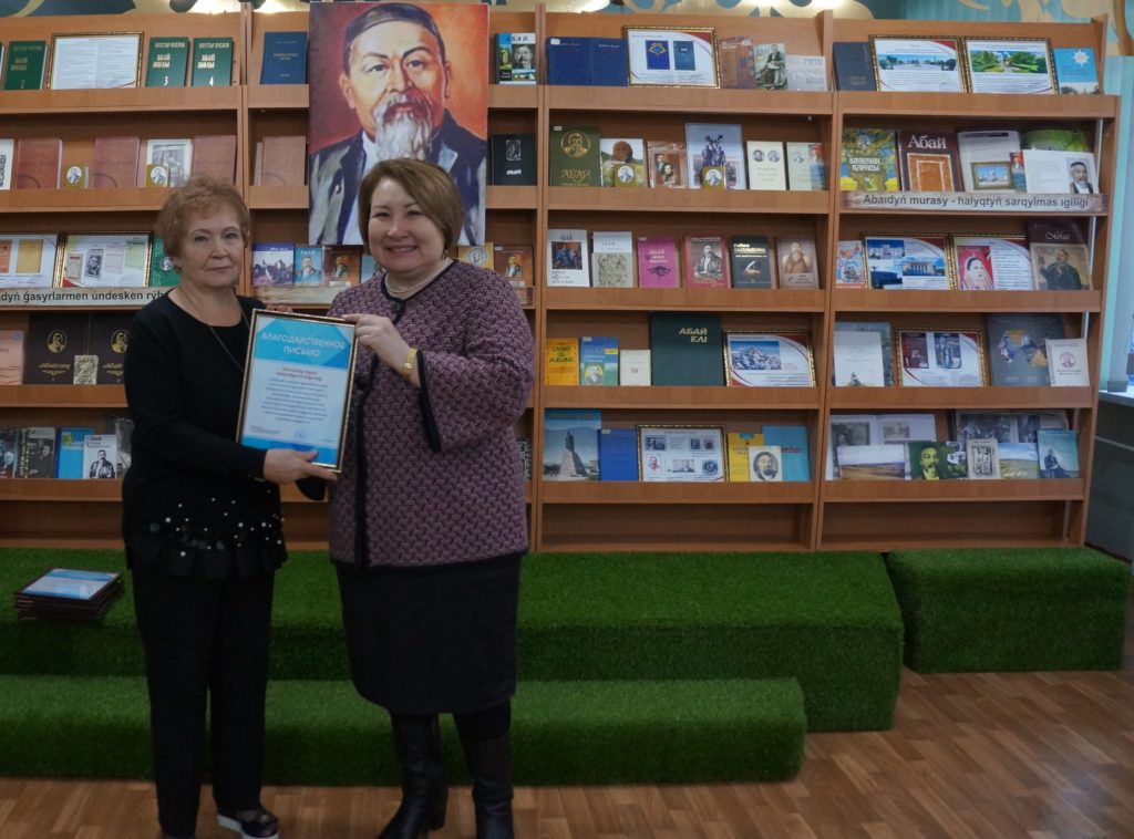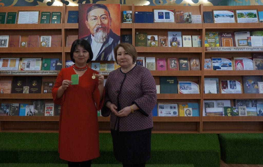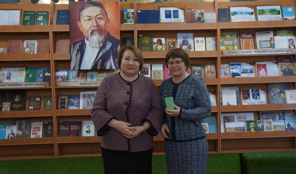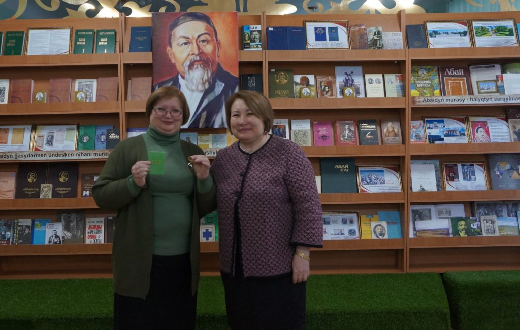 Зауре Талапкеровна вручила нагрудные знаки «Кітапхана ісінің үздігі», «Кітапхана ісінің ардагері» НБ РК и благодарственные письма от руководителя Областного Управления культуры, архивов и документации.