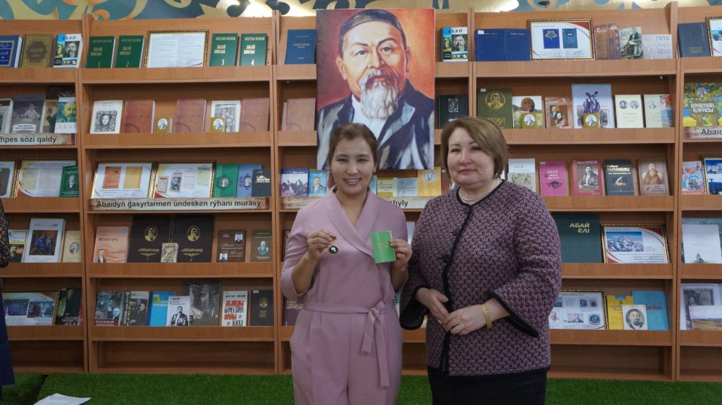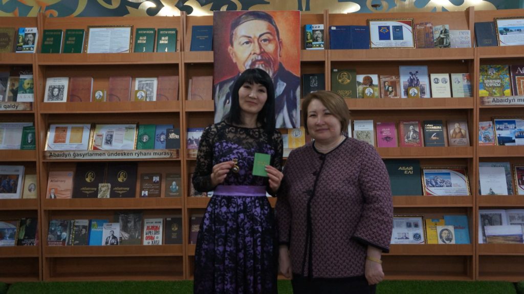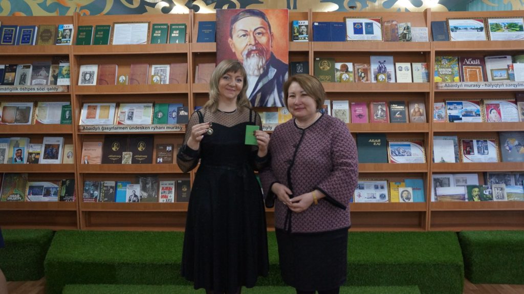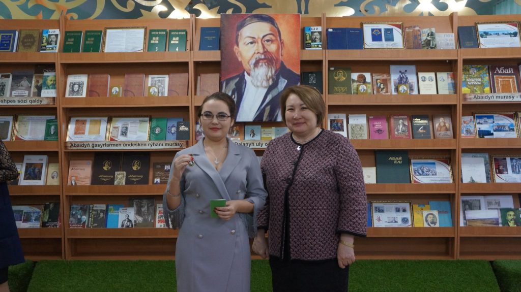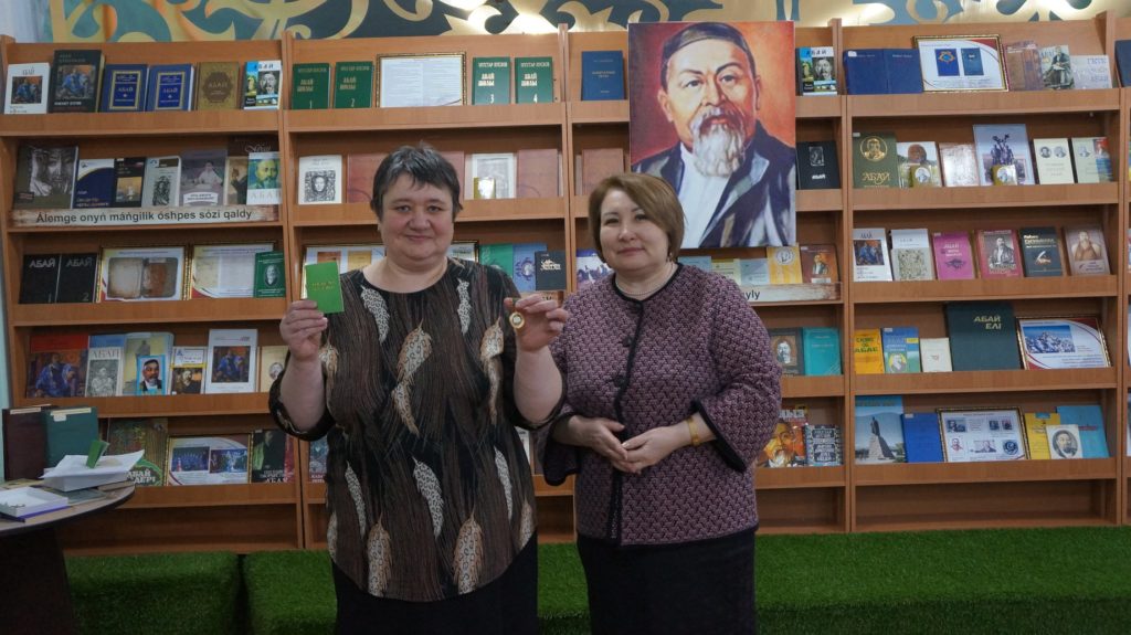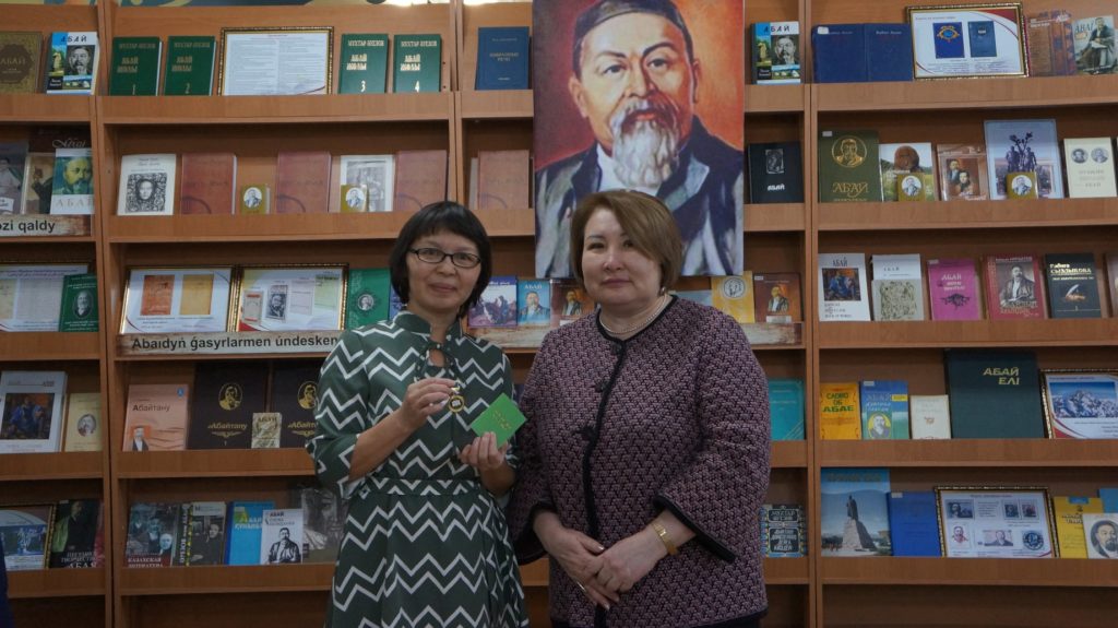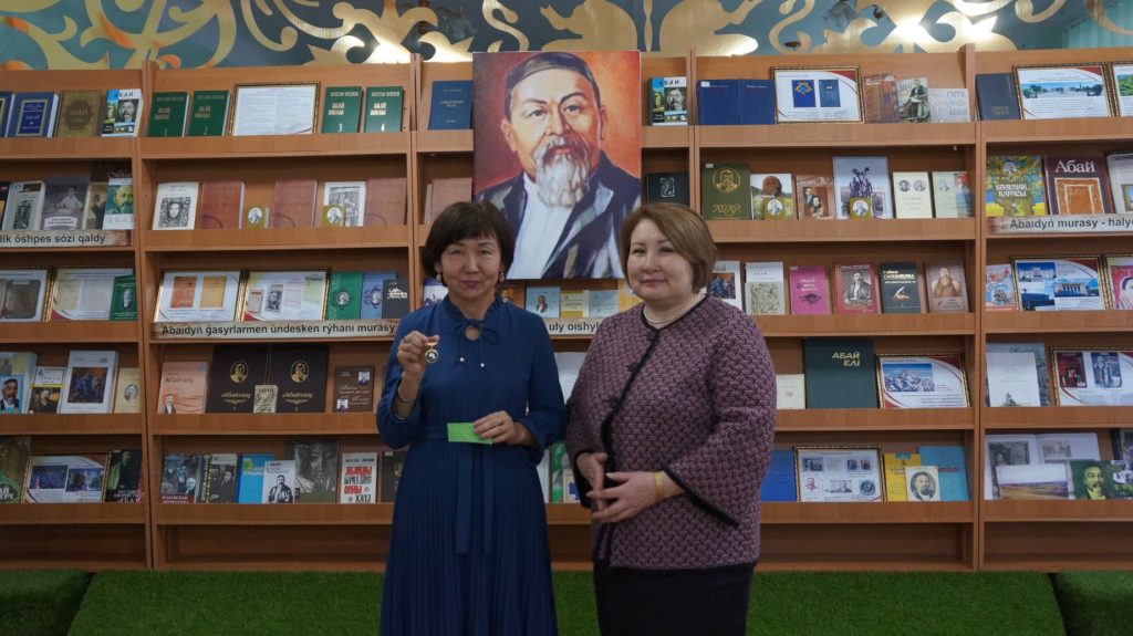 Зауре Талапкеровна вручила нагрудные знаки «Кітапхана ісінің үздігі», «Кітапхана ісінің ардагері» НБ РК и благодарственные письма от руководителя Областного Управления культуры, архивов и документации.