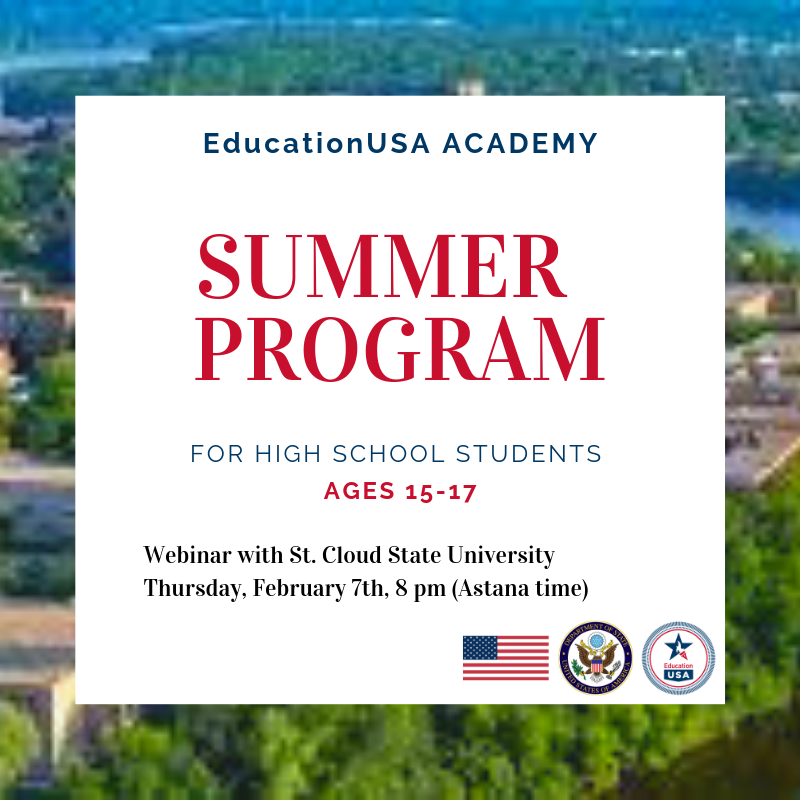 Дорогие родители и ученики. В этот четверг в 20:00 часов по времени Астаны ждем вас на вебинаре. EducationUSA Academy - это летняя программа для школьников (15-17 лет), которая предназначена подготовить ребят к обучению в США на бакалавриате.