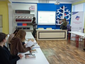 В зале мировой литературы областной библиотеки для учащихся 10 класса школы №23 был подготовлен обзор учебной и художественной литературы для изучения иностранных языков и интерактивная викторина на знание англоязычных стран.