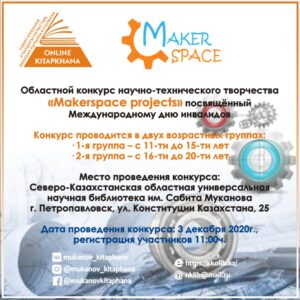 Северо-Казахстанская областная универсальная научная библиотека имени Сабита Муканова организует и проводит Областной конкурс научно-технического творчества «Makerspace projects», посвящённый Международному дню инвалидов.