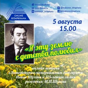 6 августа исполняется 115 лет со дня рождения писателя, нашего земляка И.П. Шухова. Сегодня пройдет онлайн-встреча с директором Литературно-мемориального дома-музея И. Шухова Макеновым Данияром Мирамовичем