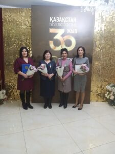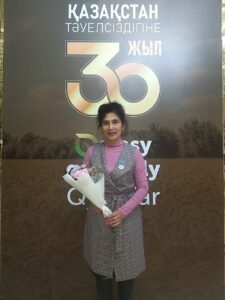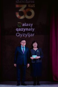 С Юбилейной медалью РК «Қазақстан Тәуелсіздігіне 30 жыл» - Майру Ашимову, руководителя центра «Мәдени мұра», обладателя Почетного знака «Мәдениет қайраткері» МКИ и ОС РК